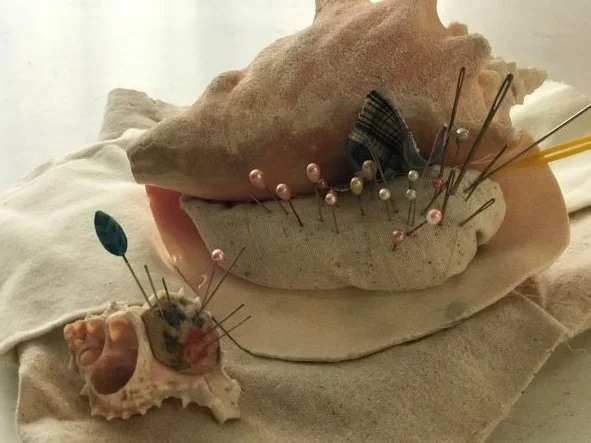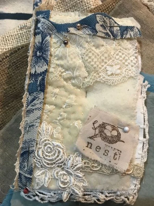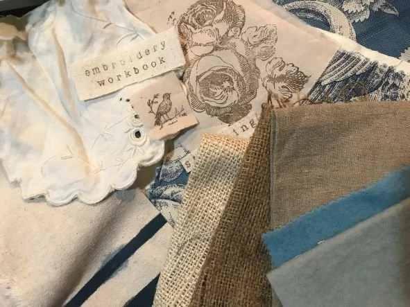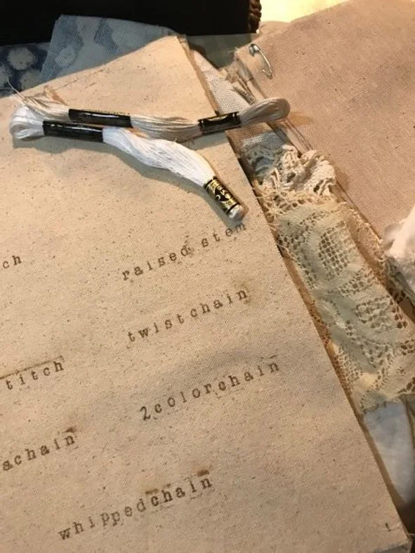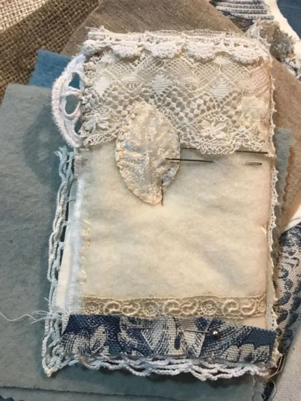 So, with antique linens and patinaed laces, canvas, and muslin, thread, and shell buttons, I have begun creating my own Embroidery Workbook and hand-sewn needle keeper. I also created a pin cushion inspired by my love for the sea, one of my favorite places. All of these things are a part of me, an expression of the well-loved things in my life.