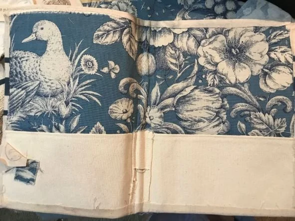 This is the inside cover it already had pockets-lucky me and so I just added a fabric sample piece from my stash.