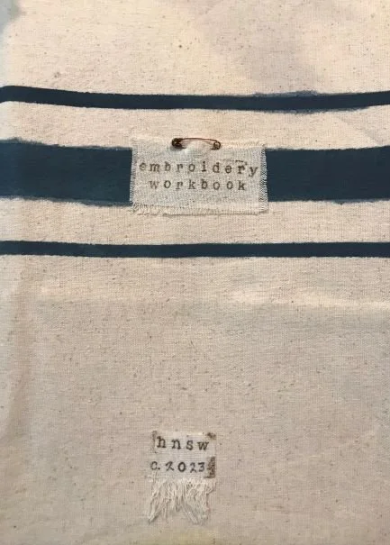 One of my goals this year is to make an effort to use what I have this year and begin limiting my consumption in the area of “artistic fodder”. If you are a creative, like me, you know exactly what I am talking about! We all have that little addiction to art supplies in their many forms. Anyway, I digress. This is the front of a pillow I attempted to paint with French ticking lines. Alas, there was some bleed-through, but I think it adds to the charm and, I am trying to use what I have after all. It has my initials and the year I started this book with a scrape from the salvage edge that was all fringy.